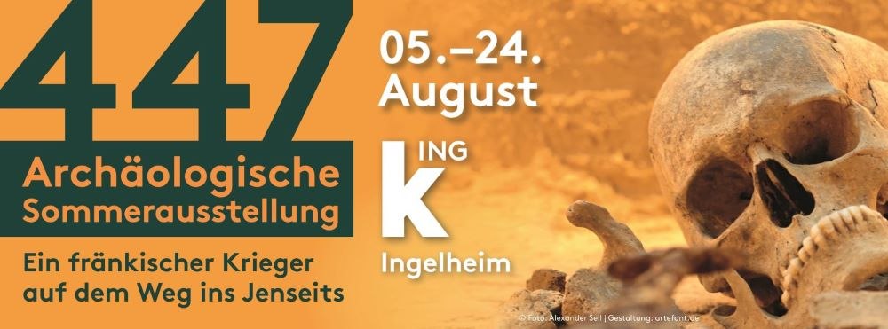 2025 kann der Krieger im August erstmals öffentlich in Ingelheim ausstellt werden, so dass jeder Interessierte einen Blick darauf erhaschen kann. Die Ausstellung findet an einem außergewöhnlichen Ort statt: Die kING – sonst ein Haus für Kultur- und Kongressveranstaltungen – öffnet für die Dauer von drei Wochen ihre Pforten für diese exklusive archäologische Sommerausstellung. Die multimedial aufbereitete Präsentation versetzt Besucherinnen und Besucher im Großen Saal in die Zeit der Reihengräberzivilisation des frühen Mittelalters. Denn wissenschaftliche Analysen der Knochen und Zähne verraten erstaunlich viel über diesen Mann, der im 7. Jahrhundert in Ingelheim gelebt hat. Auch über seine Lebenswelt ist aufgrund der intensiven archäologischen Forschungen der letzten 30 Jahre erstaunlich viel bekannt. So können die Besucher den fränkischen Krieger dank aktueller Technik beeindruckend rekonstruiert erleben.