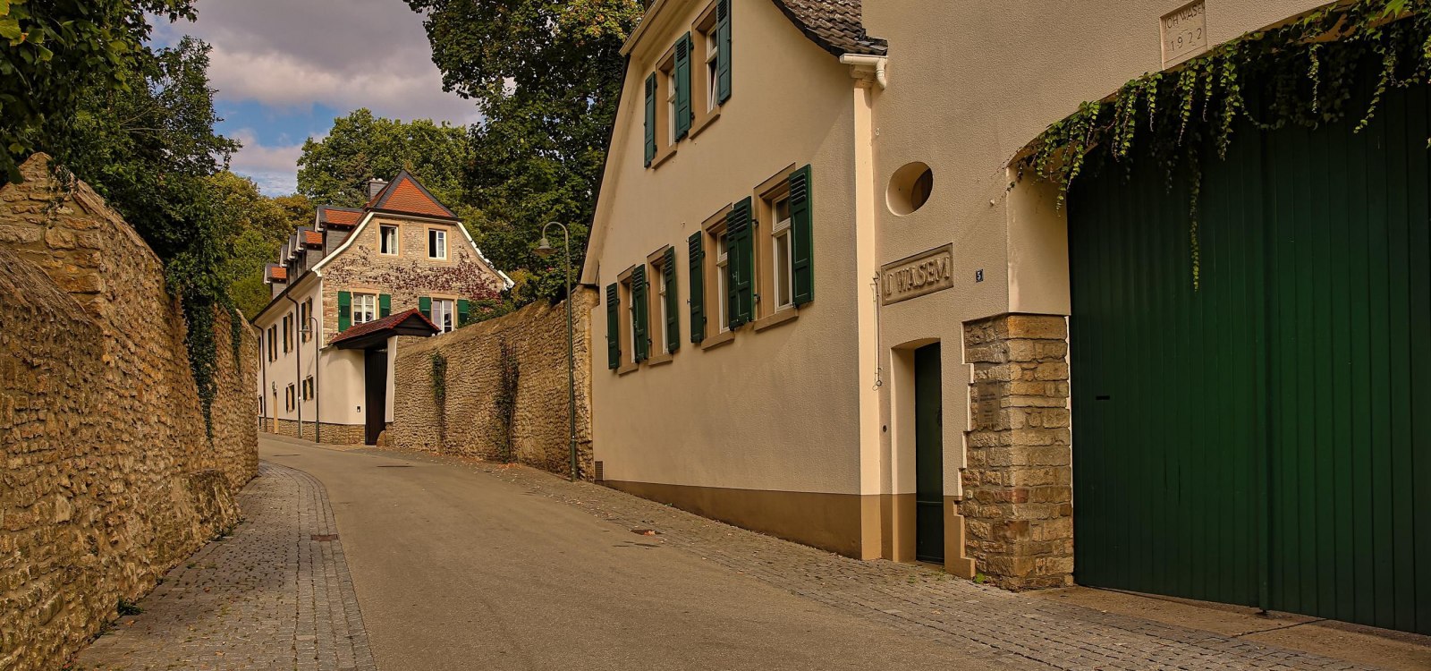 Der untere Bereich der Stiegelgasse und die Edelgasse bildeten einen der frühen Siedlungskerne von Ober-Ingelheim. Hier konzentrierte sich eine bedeutende Zahl prominenter Adelssitze, die meist als Einzelhöfe mit weitläufigen Gärten bzw. Parkflächen errichtet wurden.