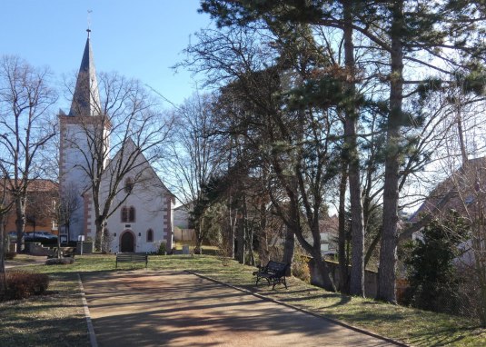 Sicher belegen lässt sich die Existenz der ev. Kirche in Dorn-Dürkheim im Jahre 1245 - vermutlich wurde das ursprüngliche Gebäude jedoch fast 400 Jahre früher gebaut. Der heutige Bau stammt größtenteils erst aus dem Jahr 1618. Das Kirchengebäude ist ein rechteckiger Saalbau und die Chorwände sind teilweise noch gotisch. Besonders beeindruckend ist der ursprünglich frei stehende Turm an der Nordseite, der mit seinen Schießscharten ein Stück Geschichte lebendig werden lässt – ganz ohne Geschosseinteilung.