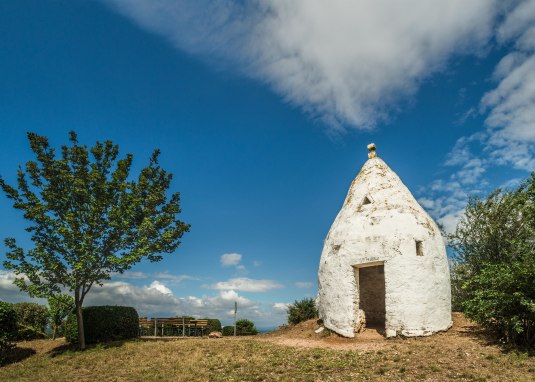 Einer der schönsten Trulli steht in Flonheim auf dem Adelberg. Man kann ihn zu Fuß über die "Hiwweltour Aulheimer Tal" erreichen, eine wunderschöne Rundwanderung mit schönen Aussichten und Rastplätzen, einen davon - mit Tischen und Bänken - direkt am Trullo. Sollte schlechtes Wetter aufziehen, findet man nach wie vor im Trullo einen sicheren Unterschlupf.