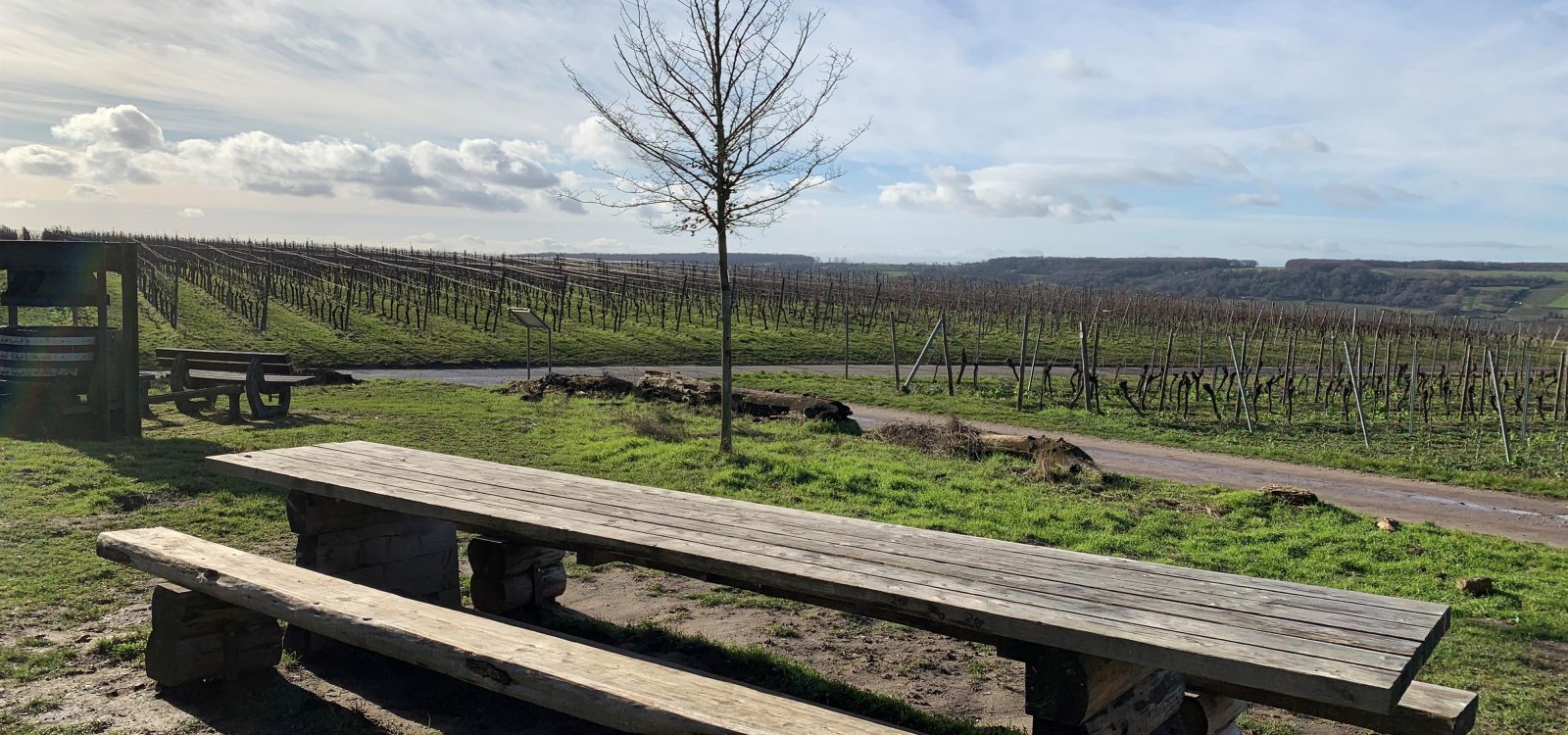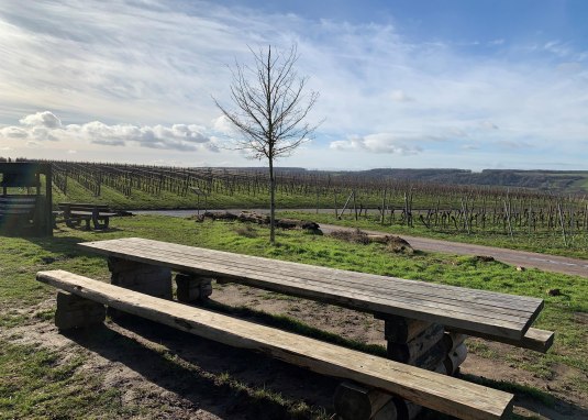 Inmitten der Ingelheimer Weinberge steht dieser Tisch des Weines direkt an der Ingelheimer Weinmeile.
