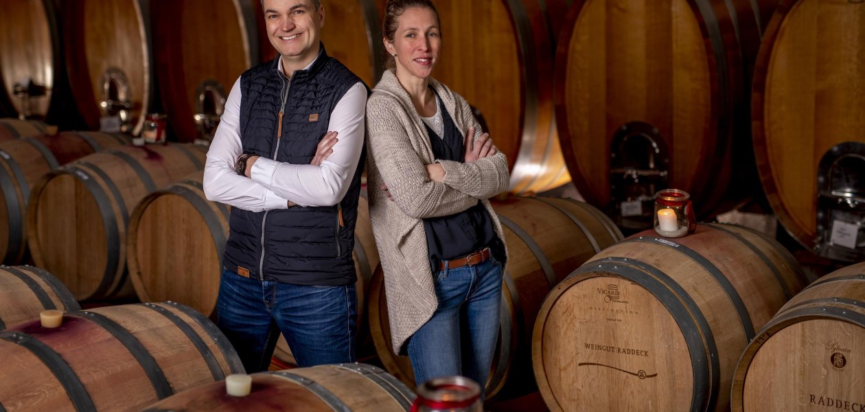 Wir, Anna und Stefan Raddeck, lieben Wein und diese Leidenschaft möchten wir mit Ihnen teilen. Seit 2003 arbeiten wir kontrolliert ökologisch, um die hervorragende Qualität unserer Weine auch für zukünftige Generationen zu bewahren. Ertragsreduzierungen, lange Maischestandzeiten und teilweise Spontanvergärungen machen unsere Weine authentisch und komplex. Dies gilt besonders für unsere Rieslinge aus den bekannten Lagen Schloss Schwabsburg, Heiligenbaum, Pettenthal und Orbel aus dem Roten Hang.