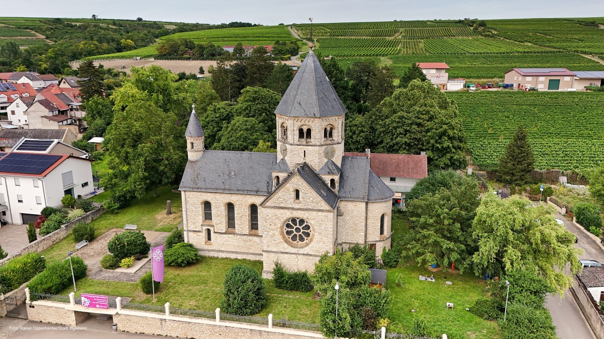 Treffpunkt für die Führung ist der Großwinternheimer „Selztaldom" in der Schwabenheimer Straße/Ecke Oberhofstraße. Nach der Besichtigung der Kirche, die ein herausragendes Zeugnis der Kirchenbaukunst des späten 19. Jahrhunderts ist, steht ein Rundgang über den Friedhof an, bei dem historische Denkmäler wie der Veteranenstein und das Mausoleum begutachtet werden. Im Anschluss an die Führung bekommen die Teilnehmerinnen und Teilnehmer in der Sektmanufaktur Rolletter einen Einblick in die Kunst der Sektherstellung. Dabei werden ein spritziger Secco und zwei hochwertige Sekte verkostet, die im traditionellen Verfahren der Flaschengärung hergestellt werden.