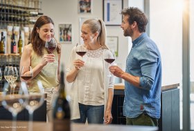 Ob rot oder weiß, trocken oder feinherb - Liebhaber des guten Tropfens finden in dem modernen Ambiente der Vinothek optimale Möglichkeiten, Ingelheimer Weine kennenzulernen. Besonders bekannt ist Ingelheim für seinen ausgezeichneten Rotwein, doch auch an hervorragenden Weißweinen ist die Auswahl groß. Ergänzt wird das Angebot durch ausgewählte Brände und Liköre.