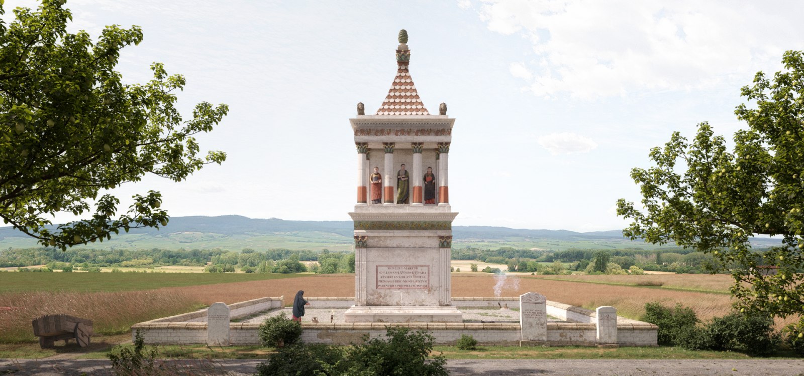 Die App „Ingelheim zur Römerzeit“ ist für IoS und Android verfügbar. Sie kann über QR-Codes (IoS und Android) auf einer Infotafel heruntergeladen werden. Die Infotafel in Gestalt der männlichen Grabfigur wird an einem stark frequentierten Radweg platziert – unmittelbar dort, wo vor rund 2000 Jahren das Grabmal gestanden haben muss. Highlight der Anwendung ist ein spektakuläres 360°-Panorama im Stil einer Augmented Reality. Weiterführende Informationen können über verschiedene Medien wie Texte, Audios und ein Video abgerufen werden.