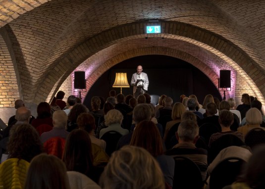 The vaulted cellar in the first basement of the Ingelheim Winzerkeller has established itself as a venue for cabaret. It has become a stage for many well-known authors who read from their works. Of course, there is also an interesting music programme.