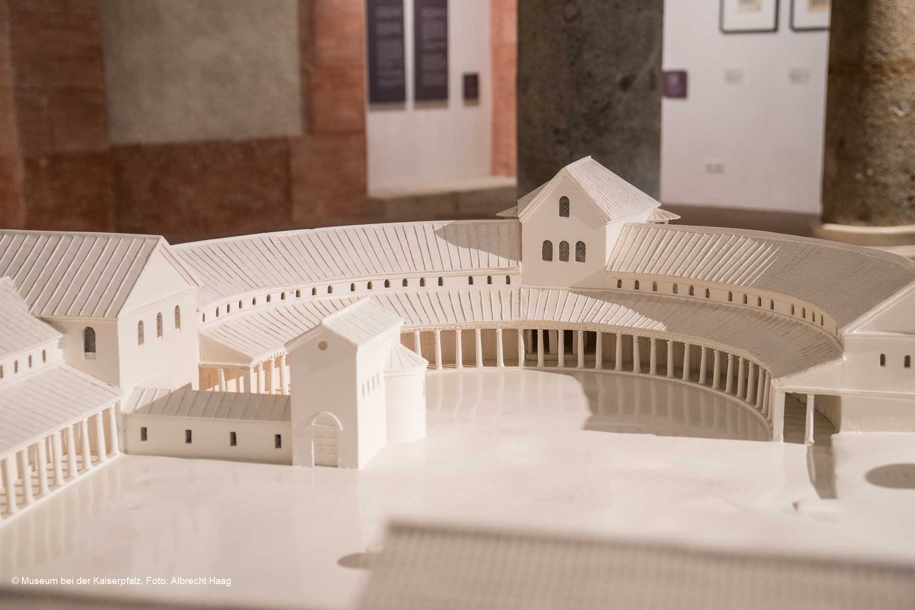 .. that is how Ermoldus Nigellus describes the recently established Ingelheimer Kaiserpfalz around 826/28. Archaeological finds confirm that Ingelheim, due to its splendor, ranks high among Charlemagne's palaces. You can find out what the Imperial Palace looked like and how it was used by Charlemagne and the subsequent Ottonians and Staufers from the Imperial Palace model in the museum and on a subsequent tour of the Imperial Palace.
