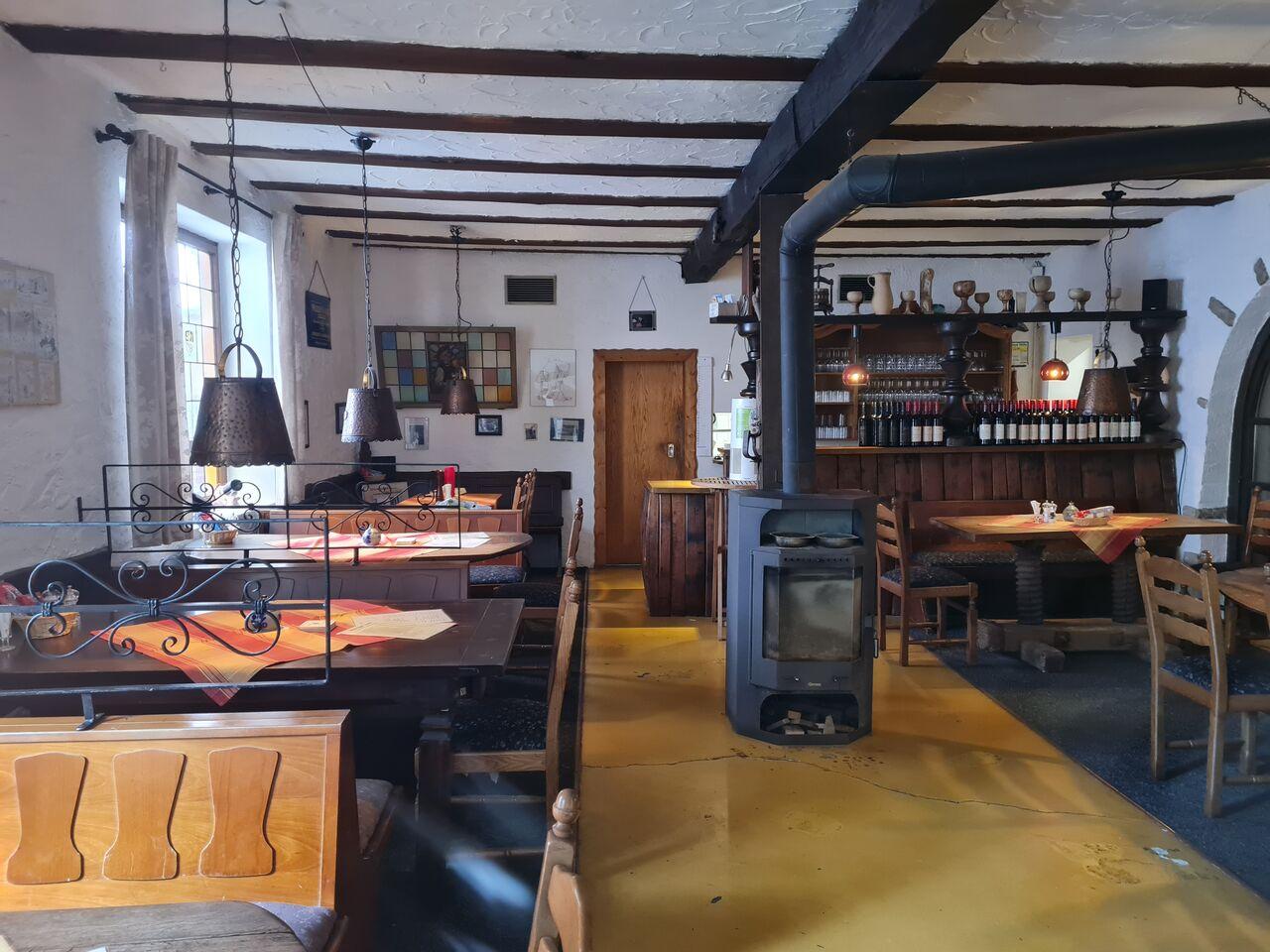 In winter, two tiled stoves spread a pleasant warmth in the guest room. A beautiful adjacent room is available for celebrations. The tip for sunny days: a courtyard adorned with flowers and Mediterranean plants.