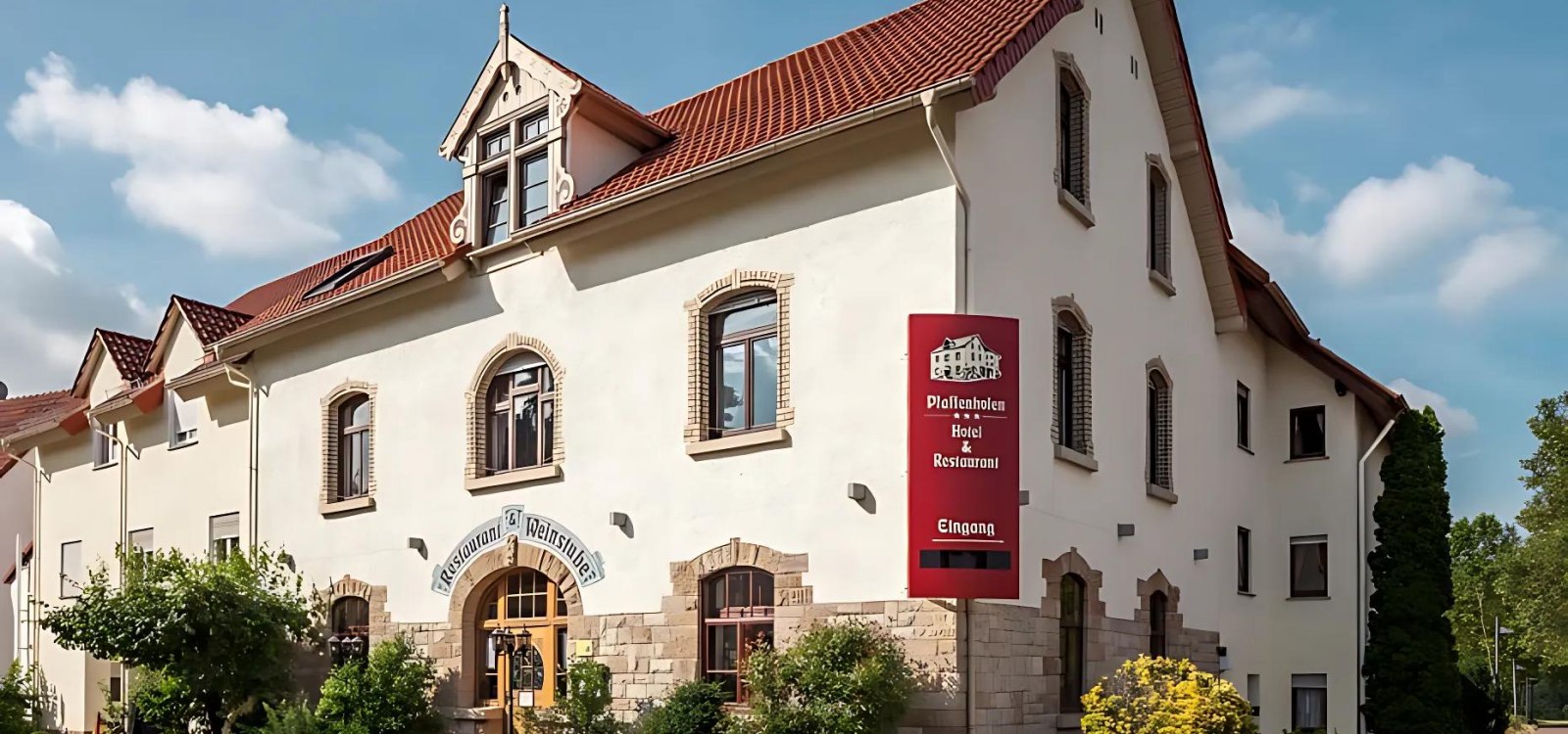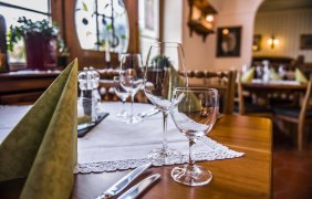 We look forward to welcoming you to our spacious, elegantly furnished restaurant, which is lit by a chandelier. In the evening, you can expect home-style German cuisine with Mediterranean influences. As we emphasise fresh and seasonal dishes, our menu changes at regular intervals. Vegetarians are just as well catered for as meat and fish lovers. If you require level access to the restaurant or garden, please let us know and we will be happy to help you!