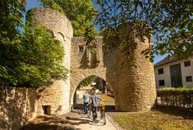 The all-around accessible main wall was mainly constructed in the 15th century. Its most vulnerable flank at the Mainzer Berg was strengthened by the addition of a Zwinger (inner defence gate). The only entrance (at Grabengasse/Kirchgasse) received an outer gate, a so-called “Barbarkane”. The second, southern breach was created in 1873 and provided access to the vineyards. The most salient point is the so-called Malakoff tower - formerly the “Alte Wache” (old guard post) with its dungeon. It offers an impressive…