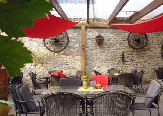 Family hospitality for 40 years in the Gutsausschank "Zum Kuhstall" with a sun terrace. The family, cohesion and health are particularly valuable here. A young spirit awaits you in our historic winery built in 1442. Take regional classics and refined creations from our kitchen with you on a culinary journey from specialties from Rheinhessen to dishes from all over the world. In many of our dishes you can also rediscover our wines - slightly flavored. With regular presentations, festivals, wine tastings and events we have realized our vision of wine hospitality. When the weather is nice, you can linger on our sun terrace. Planning a family celebration, wedding, baptism, etc. our "Heuspeicher" with panoramic balcony offers space for 65 people.