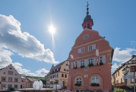 Direkt neben dem Marktplatz thront die katholische Pfarrkirche St. Cosmas und Damian, deren über 60 Meter hoher Turm schon von weitem sichtbar ist. Die Kirche wurde 1889 auf den Fundamenten einer mittelalterlichen Vorgängerkirche erbaut. Was viele nicht wissen: Der flache Durchgang unter dem Chor ist ein echter Geheimtipp, denn die Bögen tragen das Steinmetzzeichen von Johann von Diepach – ein faszinierendes Detail für Geschichtsinteressierte.