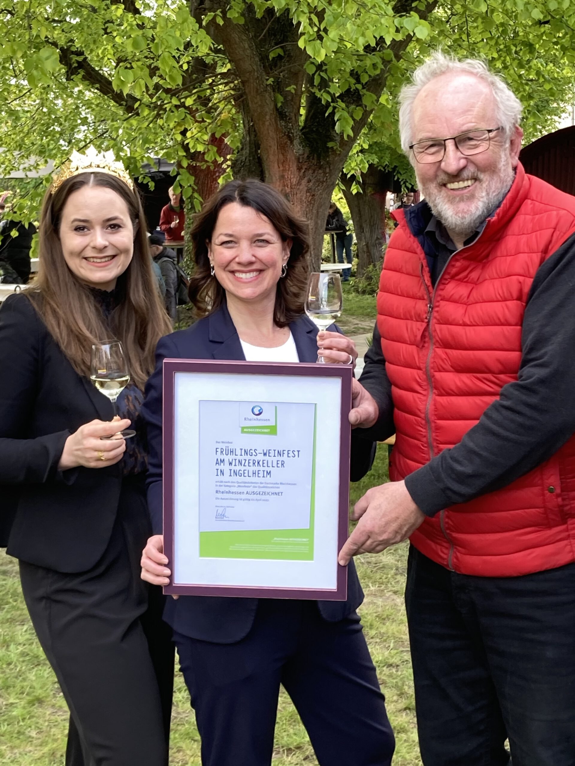 Nach dem Rotweinfest und den „BurgbergUnderVibes“ ist das beliebte Frühlingsweinfest am Ingelheimer Winzerkeller nun das dritte Weinfest in der Rotweinstadt, das mit dem begehrten Qualitätssiegel werben darf. „Die Auszeichnung ist ein Beleg dafür, dass wir mit dem Ingelheimer Frühlingsweinfest ein hochwertiges Event mit Wohlfühlambiente und besonderem Weinerlebnis geschaffen haben“, freut sich IkUM-Geschäftsführer Matthias Becker. Die Zertifizierung durch Rheinhessenwein e.V. trage dazu bei, die Attraktivität der Stadt Ingelheim weiter zu stärken und die Wein-Kultur-Landschaft Rheinhessen noch mehr in den Fokus zu rücken.