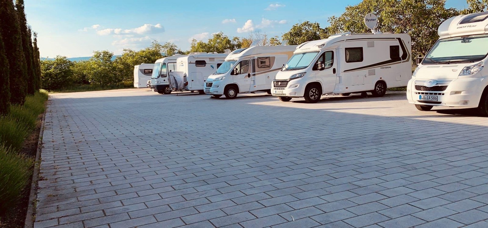 De camperplaats biedt een stroomvoorziening en faciliteiten voor aan- en afvoer.