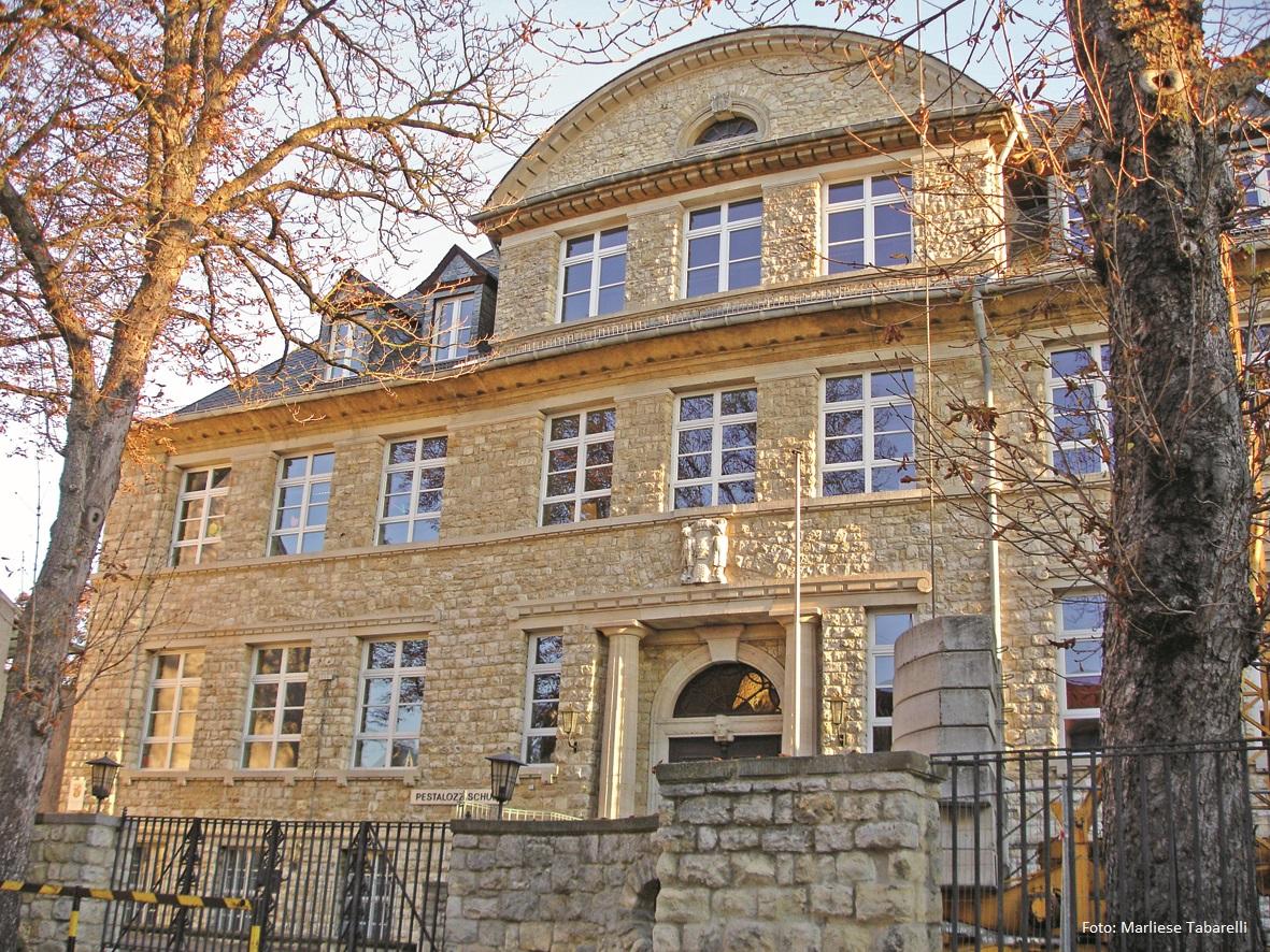 Voormalig Protestantse Schoolgebouw (François-Lachenal-Platz 7) Op de oosthoek van het plein werd in 1828 het protestantse schoolgebouw als een twee verdiepingen tellend stucwerkgebouw met hoge sokkel gebouwd, waarvan de classicistische vormen getuigen van de blijvende invloed van de Franse revolutionaire architectuur. Van 1917 tot 1934 huisvestte het gebouw het “dierkundige en historische museum” met de collecties van de Ingelheimer onderzoeker Carlo von Erlanger en van de Historische Vereniging Ingelheim e. V.