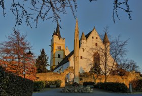 Die evangelische Burgkirche, ehemals St. Wigbert, ist Teil einer der am besten erhaltenen Kirchenbefestigungen im süd- bzw. westdeutschen Raum. Sie hat eine mehrere Jahrhunderte währende Baugeschichte. Der romanische Kirchturm vom Beginn des 12. Jahrhunderts mit seinem spätgotischen Zinnenkranz und dem Erkertürmchen überragt den dreischiffigen Kirchenbau. Dessen unterschiedliche Dachhöhen zeigen auch nach außen die verschiedenen Bauabschnitte der ersten Hälfte des 15. Jahrhunderts. Die wehrhafte…