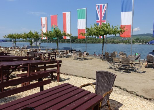 Direkt am Rhein gelegen, bei Stromkilometer 519, finden Sie unseren Ingelheimer Sommergarten. Mit dem Frei-Weinheimer Hafen auf der einen und Vater Rhein auf der anderen Seite lässt man es sich auf unserem "Eiland" gerne gut gehen. Schiffe, zum Greifen nah, herrliche Ausblicke und der Sonnenuntergang am Sommerabend laden zum Verweilen ein.