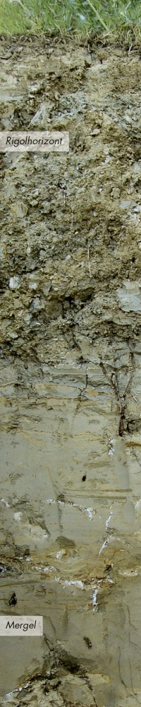 Tiefgründiger, kalkreicher Tonboden mit hohem Anteil von quellfähigem Ton, geringere Speicherfähigkeit für pflanzenverfügbares Bodenwasser, eingeschränkte Wasserdurchlässigkeit und Durchlüftung, nährstoffreich, stark kalkhaltig, mäßige Erwärmbarkeit, schwer durchwurzelbar